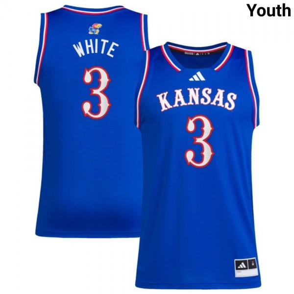 Tre White Kansas Jayhawks College Basketball Youth #3 Embroidery Jersey - Royal